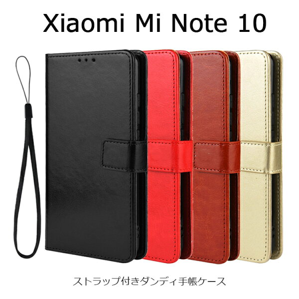 ストラップ付きダンディダイアリー手帳型ケースカバー Xiaomi Mi Note 10 Xiaomi Mi Note 10 Pro シャオミの2019年最新モデルのスマホ、シャオミ Mi Note 10 シャオミ Mi Note 10 プロ専用のケースカバー。