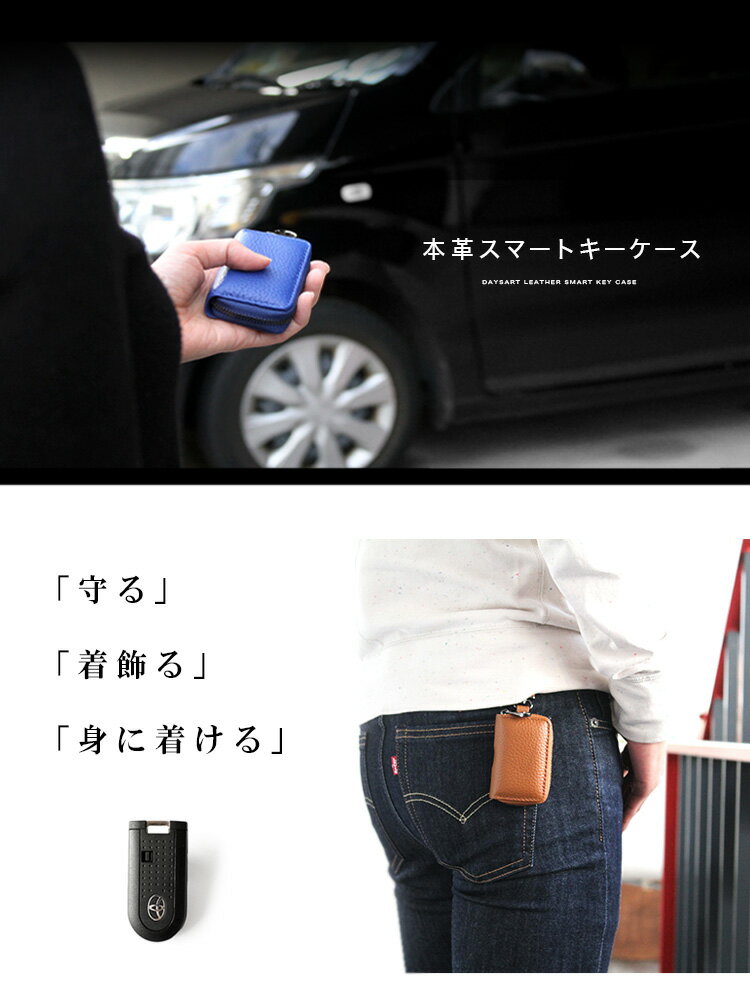スマートキーを収納するのにぴったりのサイズになっており、外側にはキーリングが付いているので普段使うカギも取り付けて持ち運ぶことができます。